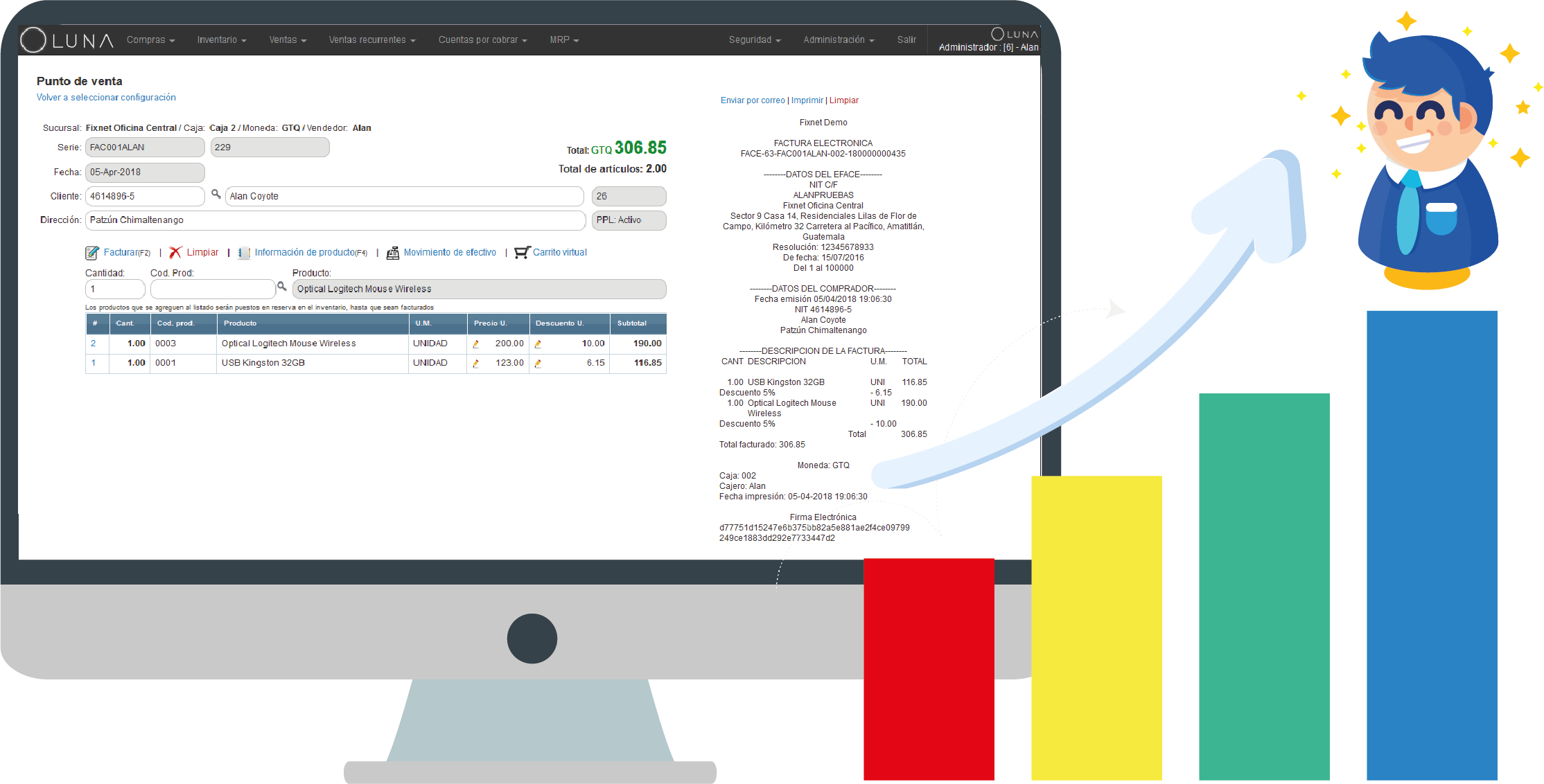 Luna ERP es un sistema de información para administrar, organizar y controlar los procesos y operaciones del negocio, como en las ventas, compras, inventarios, cuentas por cobrar y más. Desde micro hasta medianas empresas.
