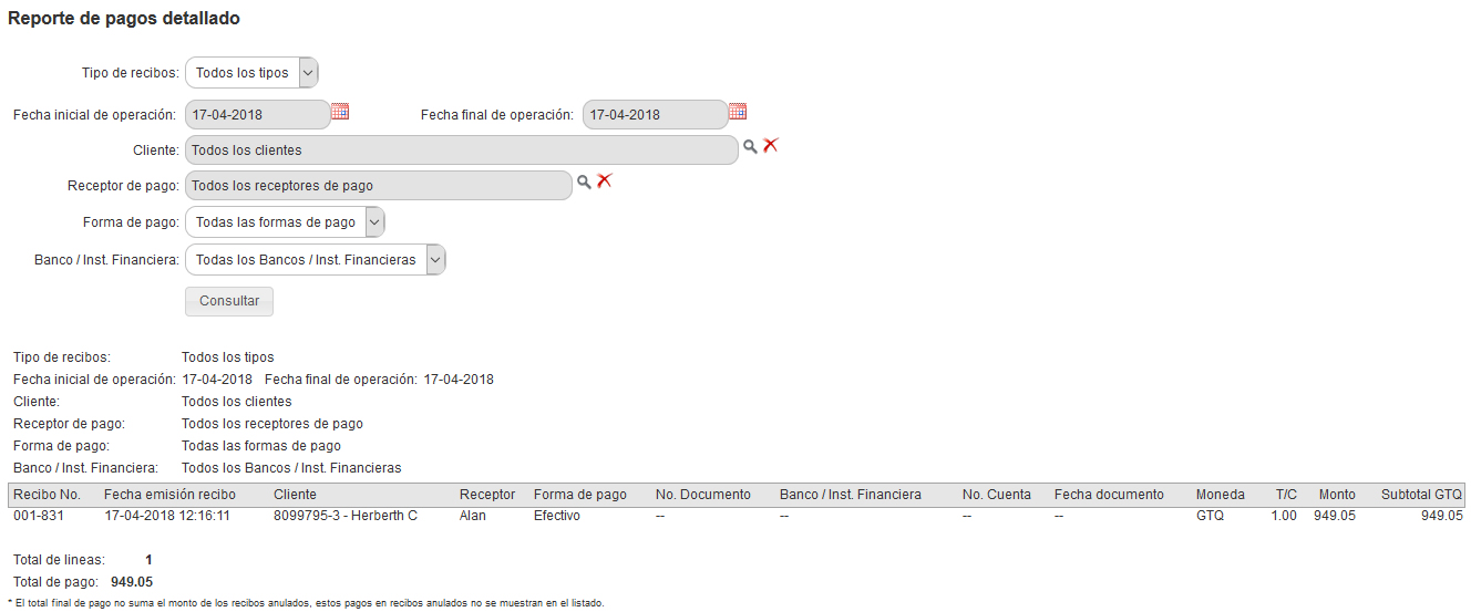 Consulta un reporte de pagos detallados de tus clientes con filtro de forma de pago, bancos y fechas.
