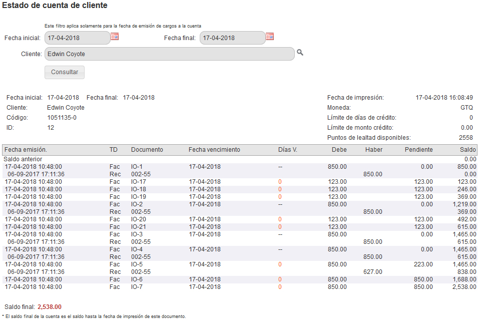 Consulta estados de cuenta por cliente para conocer sus movimientos de cargos y abonos.