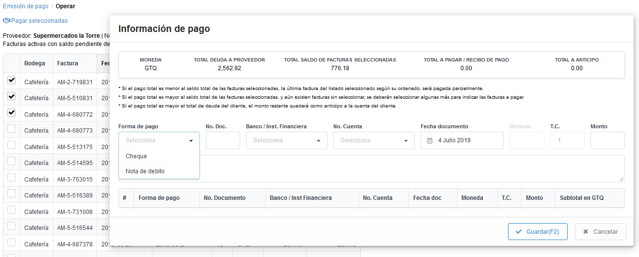 Registra los pagos a facturas o anticipos a tu cuenta con tus proveedores. Registra la forma y fecha de pago.