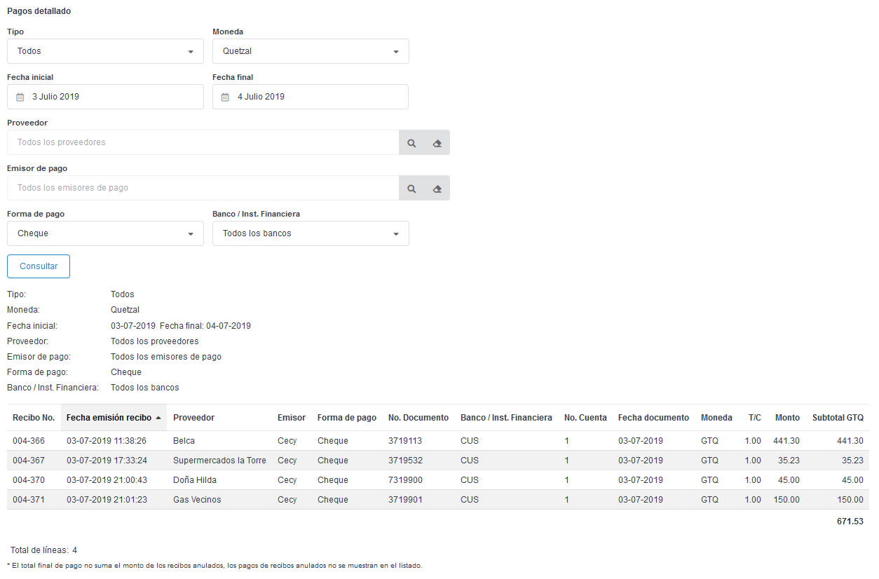 Consulta un reporte de pagos detallados a tus proveedores con filtro de forma de pago, bancos y fechas.