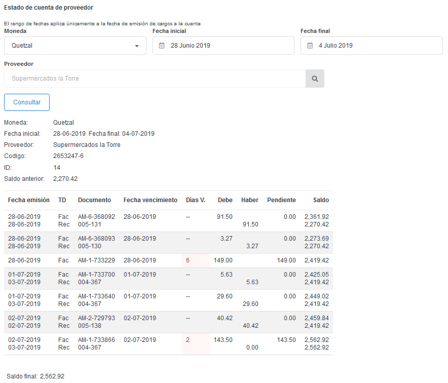 Consulta estados de cuenta por proveedor para conocer tus movimientos de cargos y abonos.