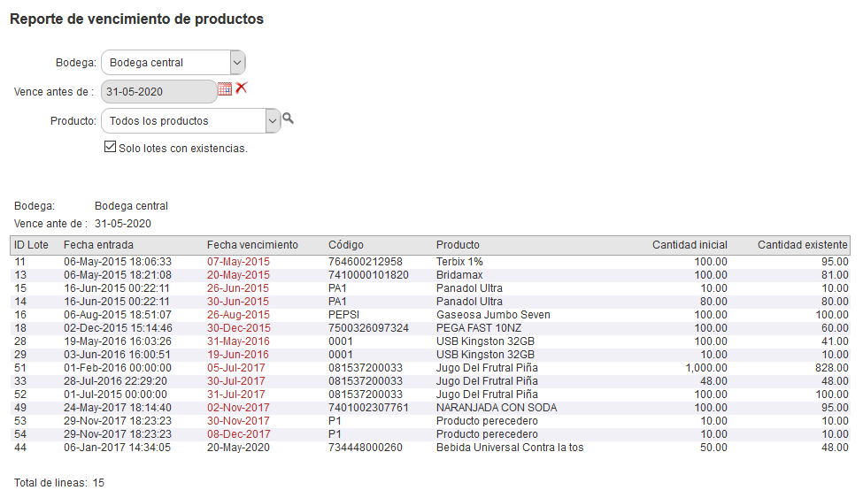 Conoce las fechas de productos prontos a vencer(expirar) y cantidad existente de cada lote de vencimiento.