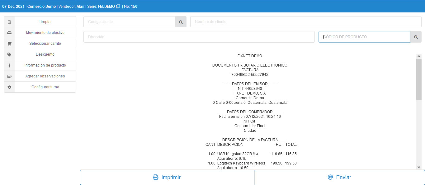 Luna ERP permite la emisión de facturas electrónicas, actualmente solo para Guatemala. Se integra a cualquier Certificador previo a una validación de implementación.
